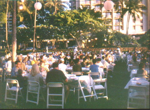 We talked a little about the car trip from my house to the Hilton, and the current lack of sleep. At that time, the players were finished getting ready, and the pictures began. Then it was back to the Mid-Pacific Conference Room and some speeches.