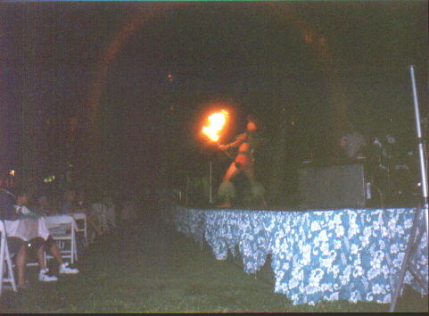 Afterwards, the dancers "coerced" individuals to come up on stage and dance. Following them were a number of male individuals that danced with the infamous "fire batons" that Hawai'i is known for.