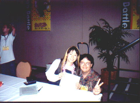 But during that time, Ms. Himeno was autographing cards at the staff table. I had my Neo Pii and ____'s Chansey signed by her, then had her write her name in the ____ block (as "Himemaru", a nickname that she goes by), and her birth date in the appropriate slot. Though she didn't give the year that she was born; instead, she wrote a "?" . . .
