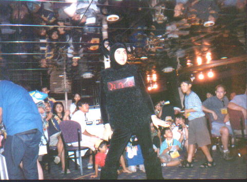 I saw Imakuni? in his costume again, this time wearing a backpack with one of the those programmable signs that you see at banks and such. Different phrases would pop up, such as "Aloha!" and "Dance!"