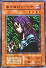 BLACK FOREST WITCH Types: Dark/Magic User Level: 4 Attack Strength: 1100 Defense Strength: 1200 Effect: If this card is put into a Cemetery from the, Field, search your deck for a Monster with a defense strength of 1500 or less and put it into your hand. Shuffle your deck afterward. |