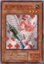 INJECTION ANGEL LILY Earth/Magic User/3/400/1500 Effect: During your or your opponent's Damage Step, you may pay 2000 Life Points and increase this card's attack strength by 3000 for the Damage Step. |
