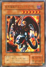 The Gilfar Demon first appeared in the tag-team duel that Yugi had with Kaiba against Light and Dark Mask. Yugi couldn't play it as a Monster, but it was discarded from his hand due to Hand Obliteration (e. Card Destruction), and helped Kaiba's Blue Eyes destroy the Masks' deadly Masked Hellraiser