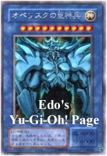 [NOTE: Obelisk was a special pack-in card during the first print run of Duel Monsters 4: Battle of Great Duelists in Japan, in the Kaiba Version.]